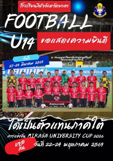 ขอแสดงความยินดีกับนักกีฬาฟุตบอล U14 ที่ได้เป็นตัวแทนภาคใต้...