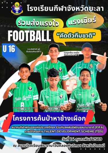 ร่วมส่งแรงใจแรงเชียร์ ให้กับนักกีฬาฟุตบอลโรงเรียนกีฬาจังหวัดยะลา...