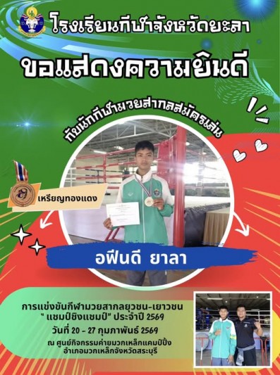 ขอแสดงความยินดีกับ อฟันดี ยาลา นักเรียนโรงเรียนกีฬาจังหวัดยะลา...