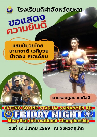 ขอแสดงความยินดี กับนายรอมฎอน แวดือจิ นักกีฬามวย ที่ได้รับรางวัล...