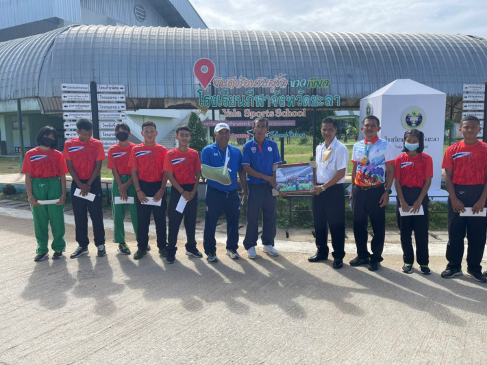 วันที่ 29 กันยายน 2565 โรงเรียนกีฬาจังหวัดยะลา ขอขอบคุณ ครูศักดิ์ดา จันทรพิศาล ครูโรงเรียนเทศบาล 4 (ธนวิถี) ครูอัมรินทร์ แก้วระงับ ครูโรงเรียนเทศบาล 1 (บ้านสะเตง) ทีมงานชมรมครูพลศึกษายะลา ทีมงานอ่ำเอนเตอร์เทน  มอบทุนสนับสนุนการศึกษาและกีฬาให้กับนักกรีฑาโรงเรียนกีฬาจังหวัดยะลา ที่สร้างผลงานในประดับประเทศ  ณ โรงเรียนกีฬาจังหวัดยะลา
