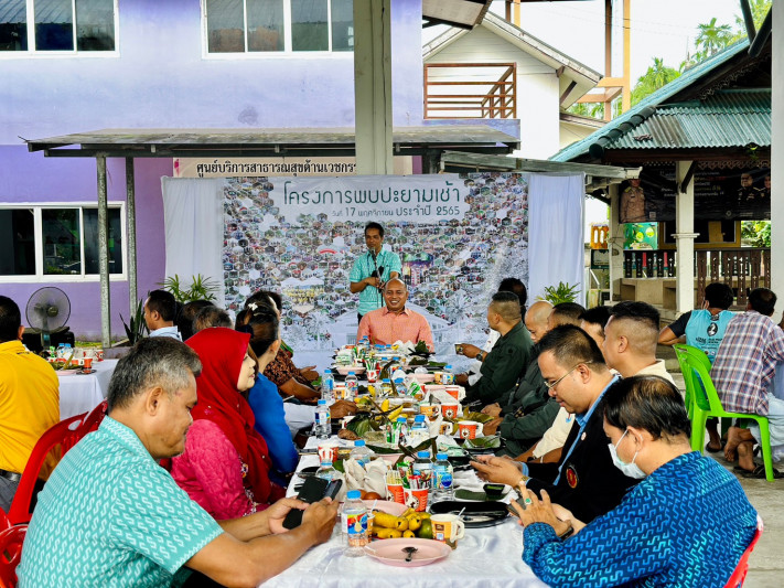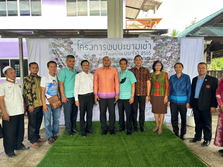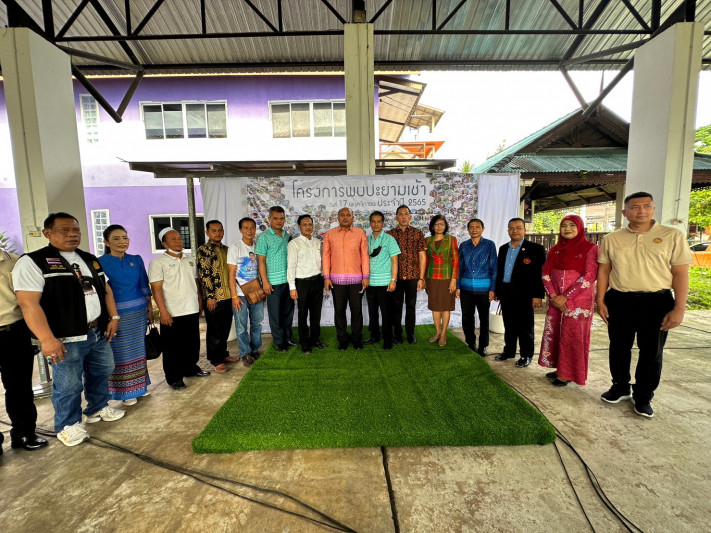 วันที่ 17 พฤศจิกายน 2565 เวลา 07.00 น. นายยงยุทธ ใหม่เสน ผู้อำนวยการโรงเรียนกีฬาจังหวัดยะลา และนายเรืองเดช ทองด้วง ข้าราชการครูโรงเรียนกีฬาจังหวัดยะลา เข้าร่วมโครงการพบปะยามเช้า ประจำปี พ.ศ.2565 เพื่อหารือข้อราชการระหว่างหน่วยงานภาครัฐ ผู้นำท้องที่ ผู้นำศาสนา ผู้ประกอบการ และรับฟังข้อคิดเห็นของประชาชนในพื้นที่เพื่อนำไปสู่การแก้ปัญหาและสานสัมพันธ์อันดีระหว่างหน่วยงานภาครัฐกับประชาชน ณ ลานอเนกประสงค์ โรงเรียนมีสุขผู้สูงวัย หมู่ที่ 1 ตำบลท่าสาป อำเภอเมืองยะลา จังหวัดยะลา