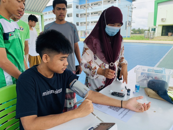 วันที่ 15-16 ธันวาคม 2565 เจ้าหน้าที่สาธารณสุข โรงพยาบาลส่งเสริมสุขภาพตำบลท่าสาป และสาธารณสุขสิรินธรจังหวัดยะลา ลงพื้นที่ให้บริการลงทะเบียนพิสูจน์ตัวตนผ่านแอปพลิเคชั่นหมอพร้อม เพื่อเข้าถึงข้อมูลสุขภาพ ได้อย่างสะดวก รวดเร็ว และปลอดภัย พร้อมตรวจคัดกรองสุขภาพเพื่อประเมินความดันโลหิต เบาหวาน แก่บุคลากร และนักเรียนโรงเรียนกีฬาจังหวัดยะลา ณ โรงยิมฟุตซอล โรงเรียนกีฬาจังหวัดยะลา
