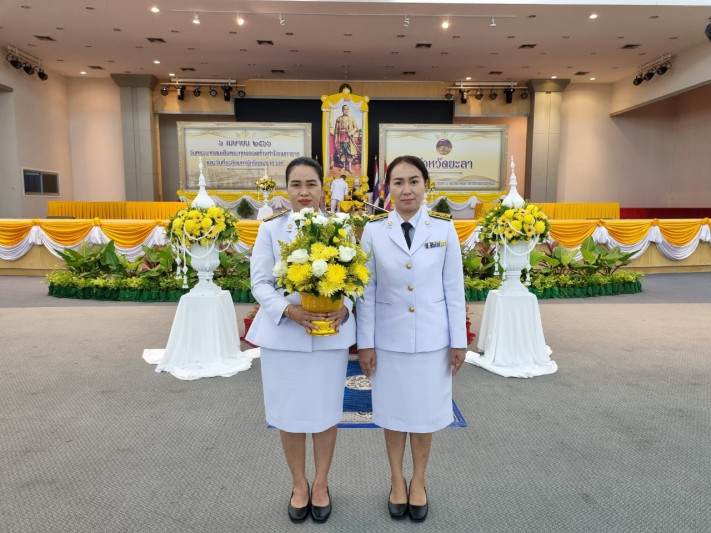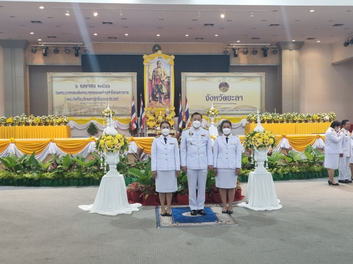 วันที่ 6 เมษายน 2566 เวลา 08.00 น. นายยงยุทธ ใหม่เสน ผู้อำนวยการโรงเรียนกีฬาจังหวัดยะลา มอบหมายให้นางสาววาสินี พันธุรัตน์ ผู้ช่วยผู้อำนวยการฯ ฝ่ายวิชาการ ครู และบุคลากรโรงเรียนกีฬาจังหวัดยะลา เข้าร่วมพิธี “วันพระบาทสมเด็จพระพุทธยอดฟ้าจุฬาโลกมหาราช และวันที่ระลึกมหาจักรีบรมราชวงศ์ ณ อาคารหอประชุมเฉลิมพระเกียรติ 80 พรรษา 5 ธันวาคม 2550 มหาวิทยาลัยราชภัฎยะลา เมืองยะลา จังหวัดยะลา