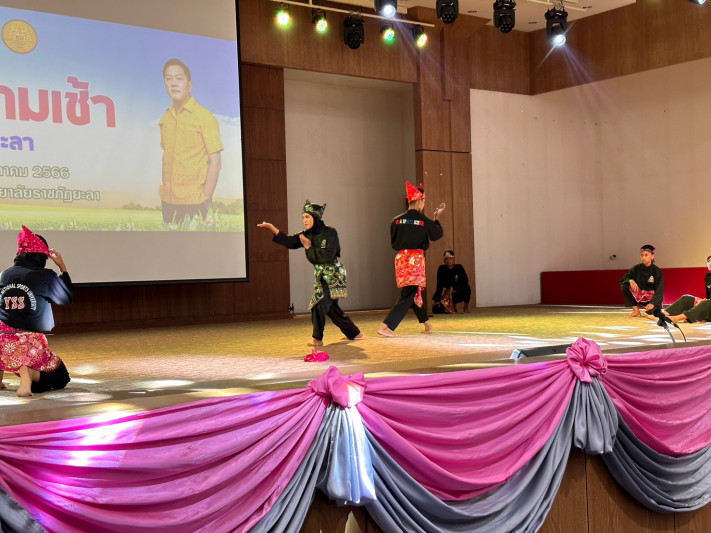 วันที่ 24พฤษภาคม 2566 นายยงยุทธ ใหม่เสน ผู้อำนวยการโรงเรียนกีฬาจังหวัดยะลา มอบหมายให้ นายบุสหลี นิสะมะแอ ผู้ช่วยผู้อำนวยการฯ ฝ่ายพัฒนากีฬา นายสมชาย ปันฑิโต ผู้ช่วยผู้อำนวยการฯ ฝ่ายกิจการนักเรียน และบุคลากรโรงเรียนกีฬาจังหวัดยะลาเข้าร่วมกิจกรรมพบปะยามเช้า จังหวัดยะลา โดยมีนักกีฬาปันจักลีลัต โรงเรียนกีฬาจังหวัดยะลา ร่วมแสดงโชว์ศิลปะการป้องกันตัว  ณ หอประชุมเล็ก มหาวิทยาลัยราชภัฏยะลา จังหวัดยะลา