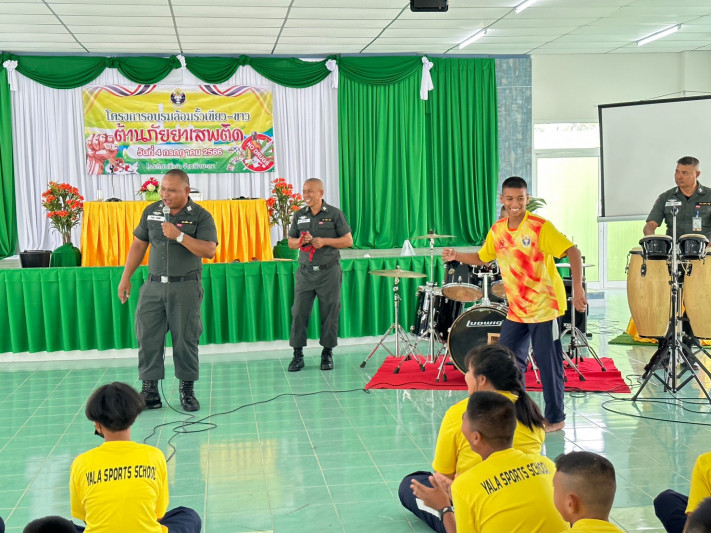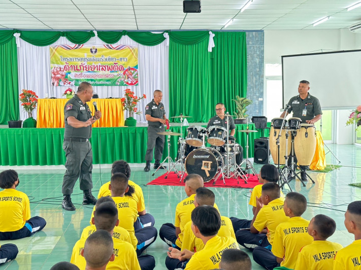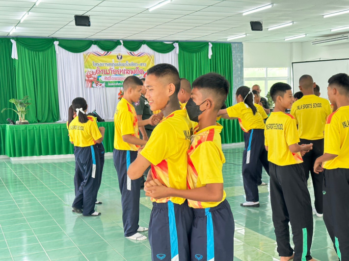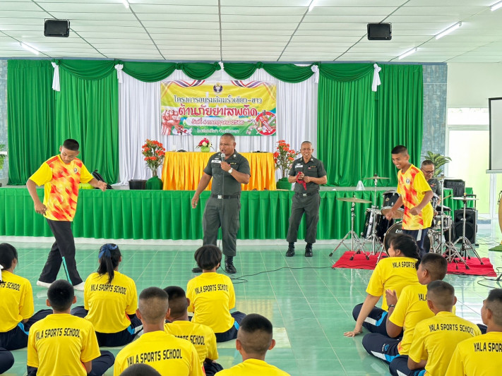 วันที่ 4 กรกฎาคม 2566 นายยงยุทธ ใหม่เสน ผู้อำนวยการโรงเรียนกีฬาจังหวัดยะลา ได้รับเกียรติเป็นประธาน เปิดโครงการอบรมล้อมรั้วเขียว-ขาว ต้านภัยยาเสพติด เพื่อรณรงค์สร้างจิตสำนึกให้นักเรียนตระหนักถึงโทษพิษภัยของยาเสพติด พร้อมขับเคลื่อนให้สถานศึกษาเป็นพื้นที่สีเขียวปลอดยาเสพติดและอบายมุข โดยมีหน่วยงานจากกองกำกับการตำรวจตระเวนชายแดนที่ 44 เป็นวิทยากร ณ โรงอาหาร ชั้น 2 โรงเรียนกีฬาจังหวัดยะลา