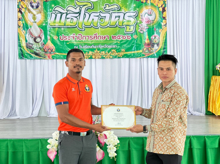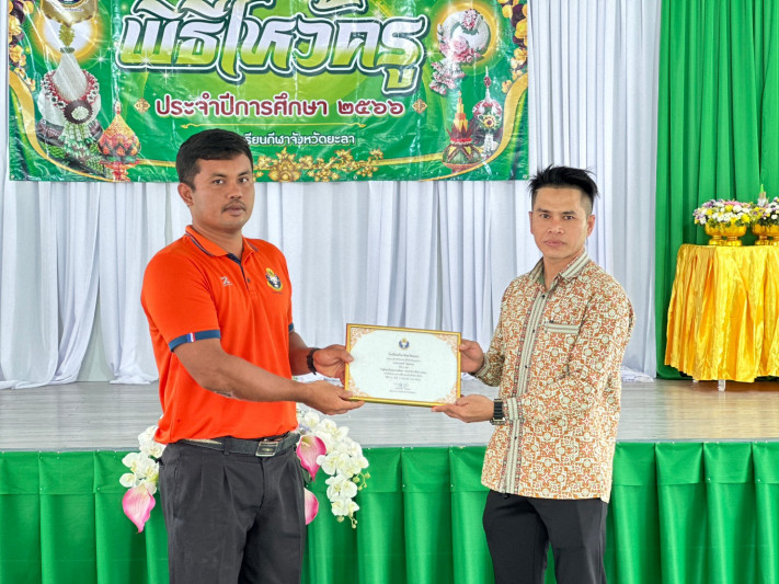 โรงเรียนกีฬาจังหวัดยะลา จัดพิธีไหว้ครู ประจำปีการศึกษา 2566 นักเรียนที่นับถือศาสนาพุทธทำพิธีไหว้ครู นักเรียนที่นับถือศาสนาอิสลามจะมีพิธีการทางศาสนา (ร่วมทำพิธีละหมาด) ผู้นำทางศาสนาบรรยายธรรมเกี่ยวกับบุญคุณครู เพื่อให้นักเรียนได้ตระหนักถึงประเพณีอันดีงามของไทย และได้แสดงความกตัญญูกตเวทิตาคุณต่อคุณครู ณ โรงอาหารชั้น 2 โรงเรียนกีฬาจังหวัดยะลา