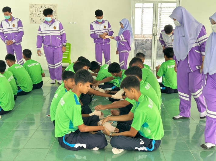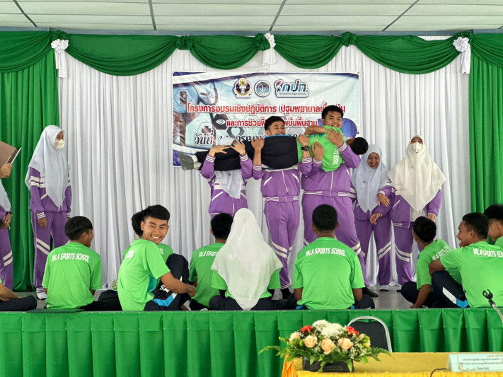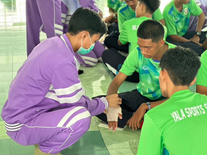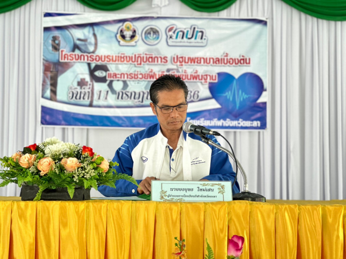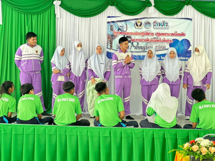 วันที่ 11 กรกฎาคม 2566 นายยงยุทธ ใหม่เสน ผู้อำนวยการโรงเรียนกีฬาจังหวัดยะลา ได้รับเกียรติเป็นประธาน เปิดโครงการอบรมเชิงปฏิบัติการปฐมพยาบาลเบื้องต้น และการช่วยฟื้นคืนชีพขั้นพื้นฐาน เพื่อเสริมสร้างความรู้ความเข้าใจเกี่ยวกับการปฐมพยาบาลเบื้องต้นกรณีเกิดการบาดเจ็บ และเกิดเหตุฉุกเฉิน ณ โรงอาหาร ชั้น 2 โรงเรียนกีฬาจังหวัดยะลา