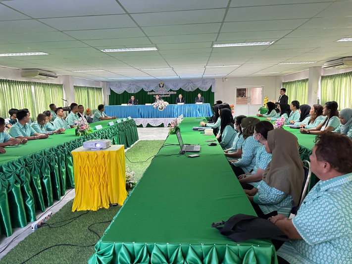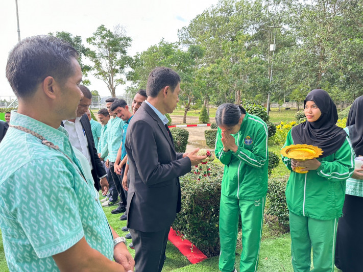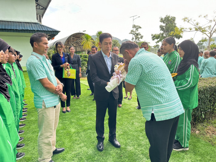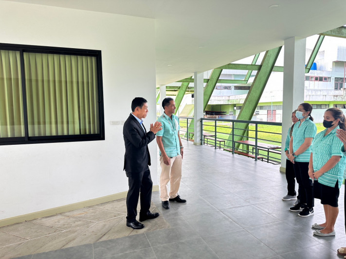 วันจันทร์ ที่ 17 กรกฎาคม 2566 นายวิษณุ ไล่ชะพิษ ปฏิบัติหน้าที่อธิการบดีมหาวิทยาลัยการกีฬาแห่งชาติ ผู้ช่วยศาสตราจารย์ ดร.นิกร สีแล รองอธิการบดีมหาวิทยาลัยการกีฬาแห่งชาติ ฝ่ายวิชาการ ผู้ช่วยศาสตราจารย์ ดร.ฉัตร์ชัย แสงสุขีลักษณ์ รองอธิการบดีมหาวิทยาลัยการกีฬาแห่งชาติ ฝ่ายกิจการนักศึกษาและกิจการพิเศษ จ.ต.หญิง ดร.ศรีรัตน์ ศรีเสวตร์ ผู้อำนวยการกองส่งเสริมวิชาการโรงเรียนกีฬา และคณะกรรมการบริหารมหาวิทยาลัยการกีฬาแห่งชาติ ประจำภาคใต้ ดร.ภานุ ศรีวิสุทธิ์ รองอธิการบดีมหาวิทยาลัยการกีฬาแห่งชาติ ประจำวิทยาเขตกระบี่ ปฏิบัติหน้าที่ ประธานกรรมการการบริหารประจำภาคใต้ ผู้ช่วยศาสตราจารย์จุฑารัตน์ ฤทธิ์เนื่อง ผู้อำนวยการสำนักคณะกรรมการบริหารประจำภาคใต้ ตรวจเยี่ยมและประชุมบุคลากรโรงเรียนกีฬาจังหวัดยะลา โดยมี นายยงยุทธ ใหม่เสน ผู้อำนวยการโรงเรียนกีฬาจังหวัดยะลา ผู้บริหาร บุคลากร และนักเรียน ให้การต้อนรับ ณ ห้องประชุมชั้น 4 อาคารเรียน โรงเรียนกีฬาจังหวัดยะลา