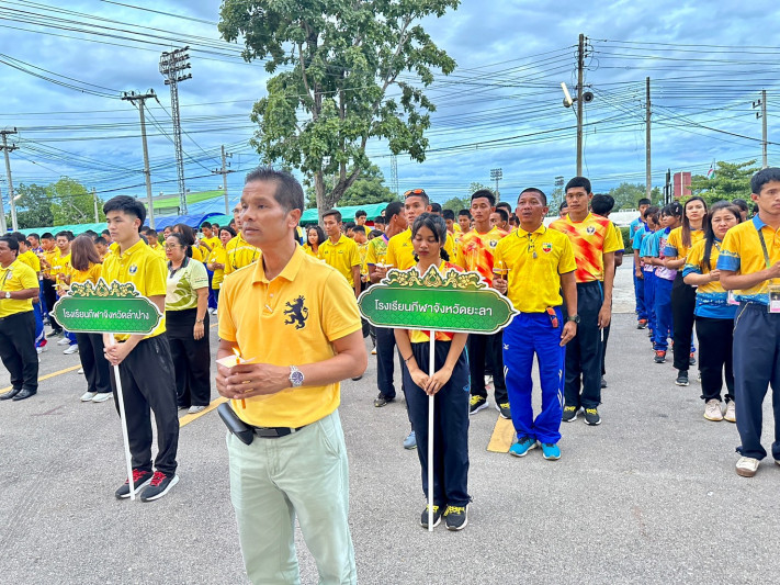 วันที่ 28 กรกฎาคม 2566 นายยงยุทธ ใหม่เสน ผู้อำนวยการโรงเรียนกีฬาจังหวัดยะลา นายสมชาย ปัณฑิโต รองผู้อำนวยการฯ ฝ่ายกิจการนักเรียน บุคลากร และนักเรียน โรงเรียนกีฬาจังหวัดยะลา ได้เข้าร่วมกิจกรรมเฉลิมพระเกียรติพระบาทสมเด็จพระเจ้าอยู่หัว เนื่องในโอกาสวันเฉลิมพระชนมพรรษา 28 กรกฎาคม 2566 โดยมีผู้ช่วยศาสตราจารย์ ดร.ฉัตร์ชัย แสงสุขีลักษณ์ รองอธิการบดีมหาวิทยาลัยการกีฬาแห่งชาติ ฝ่ายกิจการนักศึกษาและกิจการพิเศษ เป็นประธานในพิธี ณ มหาวิทยาลัยการกีฬาแห่งชาติ วิทยาเขตลำปาง