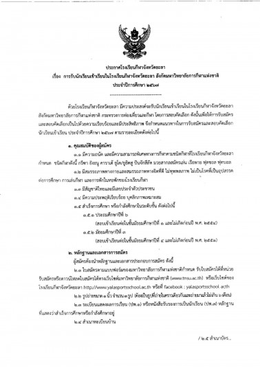 ประกาศรับสมัครนักเรียนเข้าเรียนในโรงเรียนกีฬาจังหวัดยะลา ประจำปีการศึกษา 2567