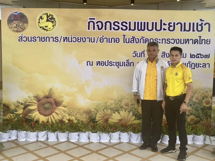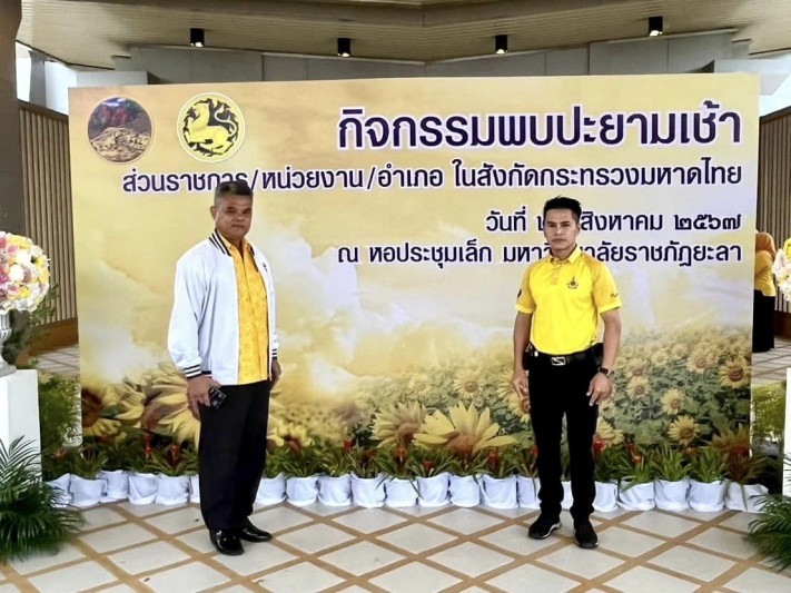 วันที่ 26 สิงหาคม 2567 เรือเอกบุญพบ ประพฤติ ผู้อำนวยการโรงเรียนกีฬาจังหวัดยะลา มอบหมายให้ นายเรืองเดช ทองด้วง รองผู้อำนวยการฝ่ายบริหาร และ นายบุสหลี นิสะมะแอ รองผู้อำนวยการพัฒนากีฬา ร่วมกิจกรรมพบปะยามเช้า ประจำเดือนสิงหาคม ณ ห้องประชุมเล็ก มหาวิทยาลัยราชภัฏยะลา