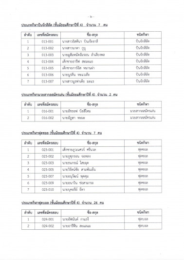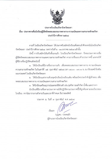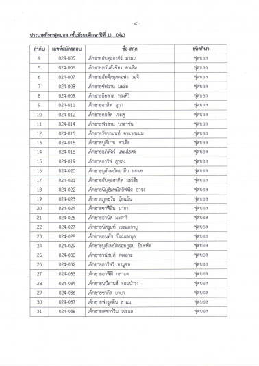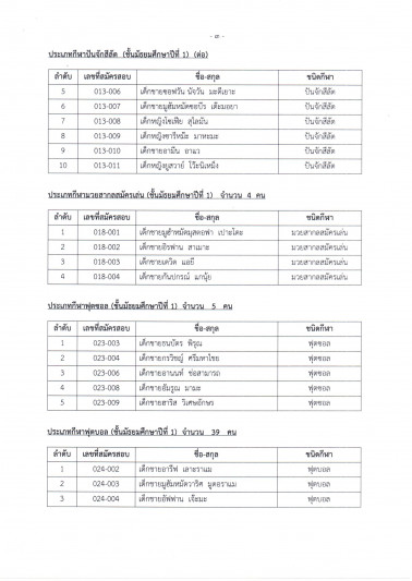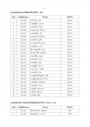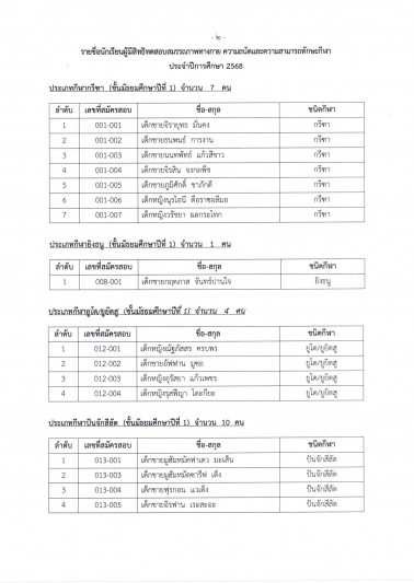 ประกาศรายชื่อนักเรียนผู้มีสิทธิทดสอบสมรรถภาพทางกาย ความถนัดและความสามารถทักษะกีฬา ประจำปีการศึกษา 2568