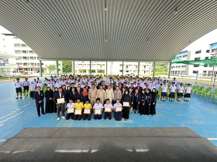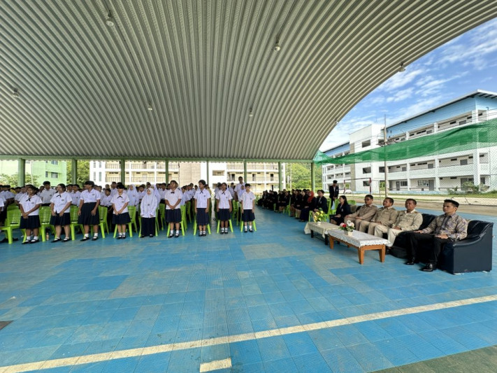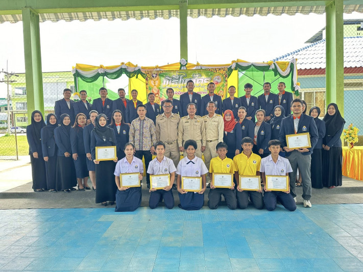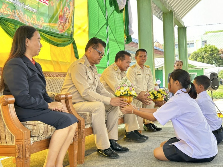 เรือเอกบุญพบ ประพฤติ ผู้อำนวยการโรงเรียนกีฬาจังหวัดยะลา คณะผู้บริหาร ครูผู้สอนวิชาสามัญและครูผู้สอนวิชากีฬา ร่วมโครงการไหว้ครู ปีการศึกษา 2568 ณ อาคารเอนกประสงค์ โรงเรียนกีฬาจังหวัดยะลา