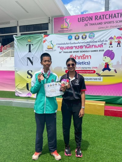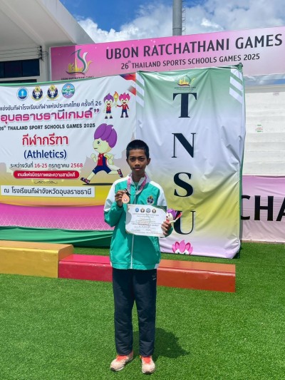 ขอแสดงความยินดี กับนายธันวา สะเอียบคง นักกีฬากรีฑา โรงเรียนกีฬาจังหวัดยะลา ที่ได้รับชนะเลิศอันดับที่ 3 เหรียญทองแดง การแข่งขันกีฬาโรงเรียนกีฬาแห่งประเทศไทยครั้งที่ 26 อุบลราชธานีเกมระหว่างวันที่ 16 - 25 กรกฎาคม 2568 ณ จังหวัดอุบลราชธานี