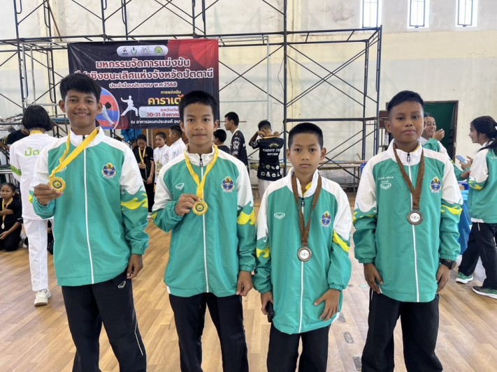 ขอแสดงความยินดีกับนักกีฬาคาราเต้โรงเรียนกีฬาจังหวัดยะลาที่ได้รับรางวัล 2 เหรียญทอง 2 เหรียญทองแดง ในการแข่งขันกีฬามหกรรมการจัดการแข่งขันกีฬาชิงชนะแห่งจังหวัดปัตตานี วันที่ 22 สิงหาคม 2568 ณ สนามกีฬากลางจังหวัดปัตตานี