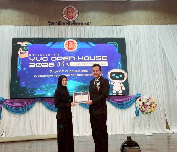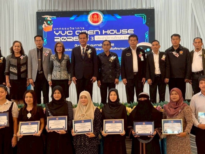 วันที่ 11 กุมภาพันธ์ 2569 นายเรืองเดช ทองด้วง รักษาราชการแทนผู้อำนวยการโรงเรียนกีฬาจังหวัดยะลา มอบหมายให้นางสาวอาบีดะห์ ซามอ ครูผู้สอน นำนักเรียนเข้าร่วม มหกรรมวิชาการ YVC Open House 2026 ครั้งที่ 3 ประจำปีการศึกษา 2568 ณ หอประชุมกาญจนาภิเษก