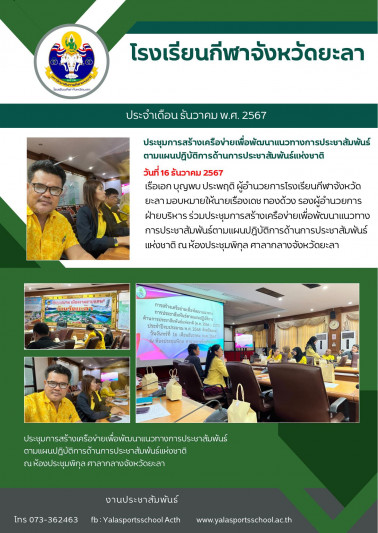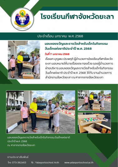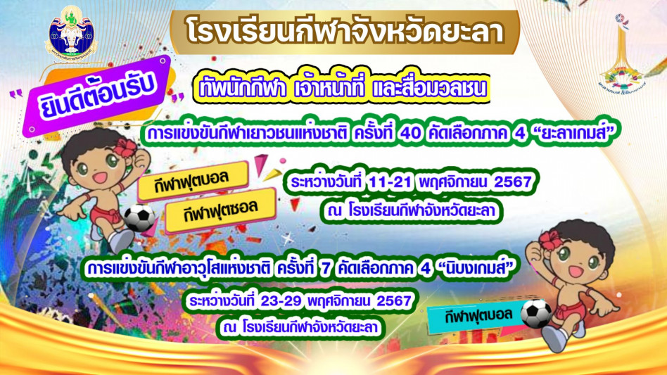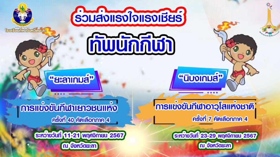 โรงเรียนกีฬาขอขอบคุณคณะผู้บริหาร และบุคลากรโรงเรียนกีฬาจังหวัดยะลา...