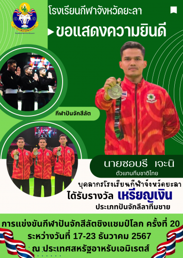 ขอแสดงความยินดีกับนายซอบรี เจะนิ บุคลากรโรงเรียนกีฬาจังหวัดยะลา...
