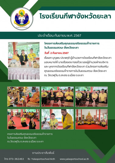 ร่วมโครงการส่งเสริมคุณธรรมจริยธรรมข้าราชการในวันธรรมสวนะ จังหวัดยะลา