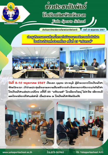 เข้าร่วมประชุมติดตามความคืบหน้าการดำเนินงานการจัดการแข่งขันกีฬาโรงเรียนกีฬาแห่งประเทศไทย...