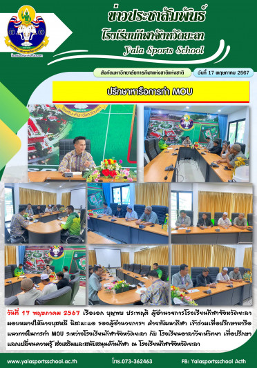 เข้าร่วมเพื่อปรึกษาหารือ แนวทางในการทำ MOU ระหว่างโรงเรียนกีฬาจังหวัดยะลา...
