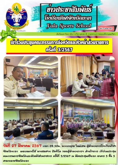 เข้าร่วมประชุมคณะกรรมการจังหวัดและหัวหน้าส่วนราชการ ครั้งที่ 3/2567