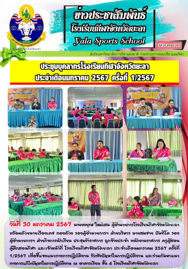 ประชุมบุคลากรโรงเรียนกีฬาจังหวัดยะลา ประจำเดือน มกราคม 2567 ครั้งที่ 1/2567