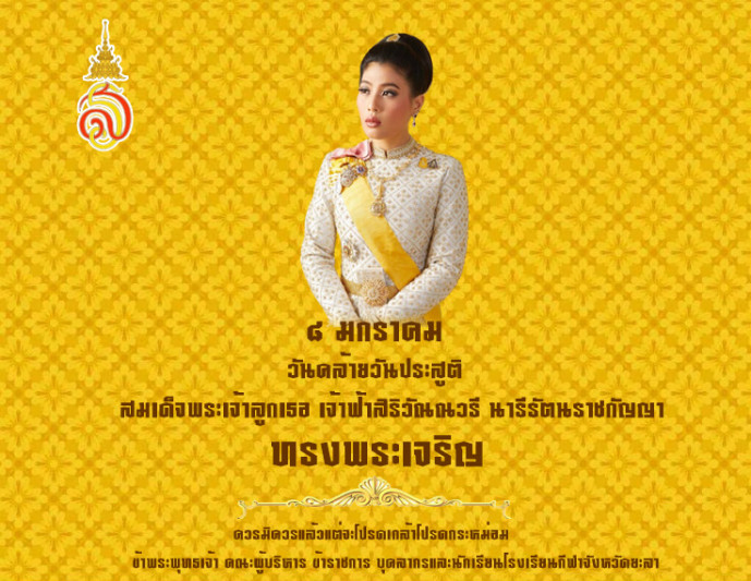 ๘ มกราคม วันคล้ายวันประสูติ สมเด็จพระเจ้าลูกเธอ เจ้าฟ้าสิริวัณณวรี...