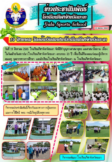 19 สิงหาคม วันคล้ายวันสถาปนาโรงเรียนกีฬาจังหวัดยะลา