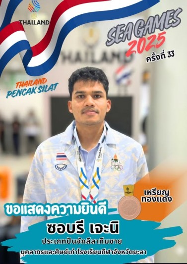 ขอแสดงความยินดีกับนายซอบรี เจะนิ บุคลากรและศิษย์เก่าโรงเรียนกีฬาจังหวัดยะลาเป็นนักกีฬาปันจักสีลัต...