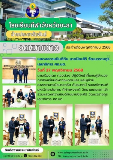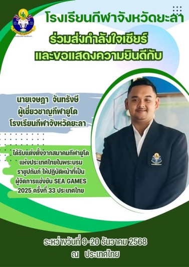 โรงเรียนกีฬาจังหวัดยะลาขอแสดงความยินดีกับนายเจษฎา...