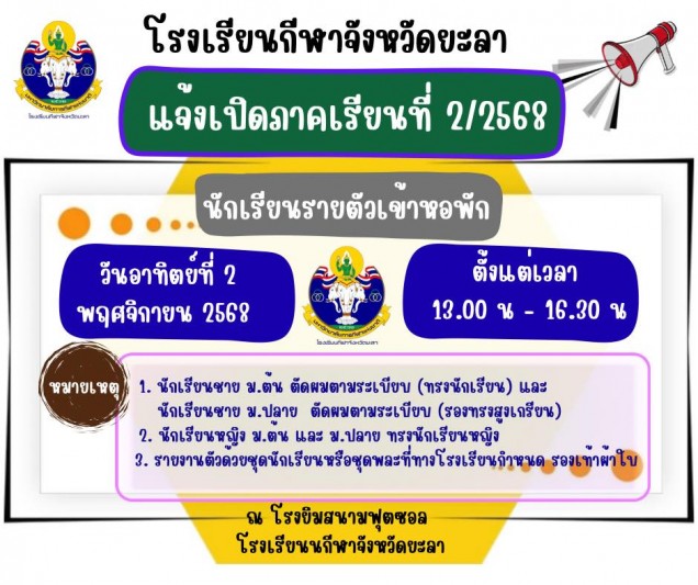 แจ้งเปิดภาคเรียนที่ 2 ปีการศึกษา 2568