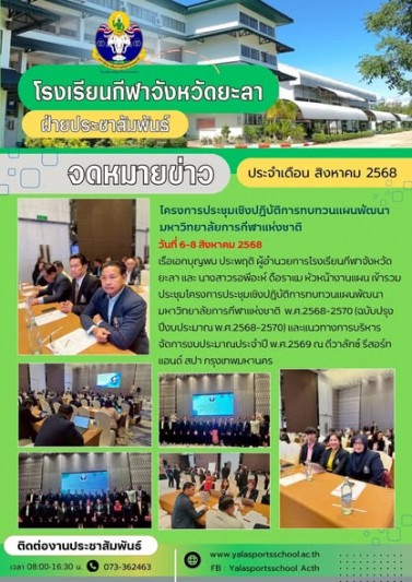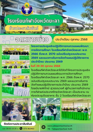 ได้จัดทำโครงการประชุมเชิงปฏิบัติการทบทวนแผนพัฒนาการจัดการศึกษาโรงเรียนกีฬาจังหวัดยะลา...