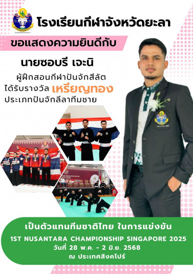 ขอแสดงความยินดีกับนายซอบรี เจะนิ  ผู้ฝึกสอนกีฬาปันจักสีลัต...