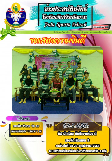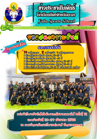 ขอแสดงความยินดีกับนักกีฬาปันจักสีลัต โรงเรียนกีฬาจังหวัดยะลา...