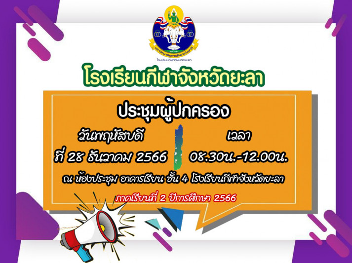 โรงเรียนกีฬาจังหวัดยะลา ประชุมผู้ปกครอง ภาคเรียนที่ 2 ประจำปีการศึกษา 2566