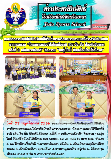 ขอแสดงความยินดีกับนักเรียนที่ได้รับถ้วยรางวัลพระราชทานและโล่รางวัลเกียรติยศจากกระทรวง...