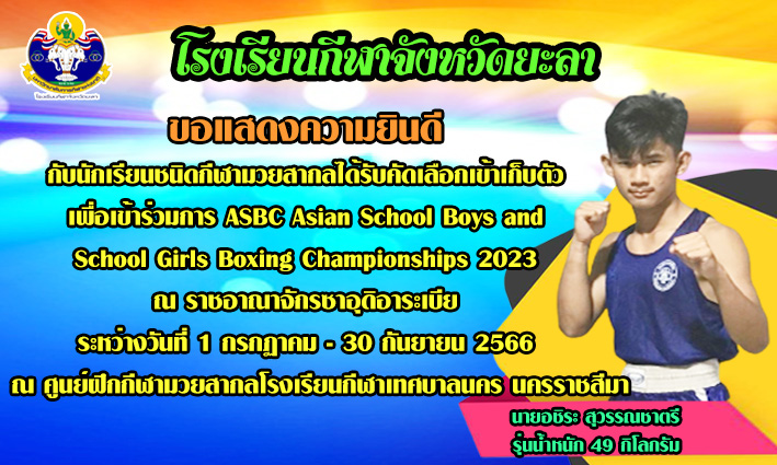 ขอแสดงความยินดี กับนายอชิระ สุวรรณชาตรี นักเรียนชนิดกีฬามวยสากลได้รับคัดเลือกเข้าเก็บตัว...