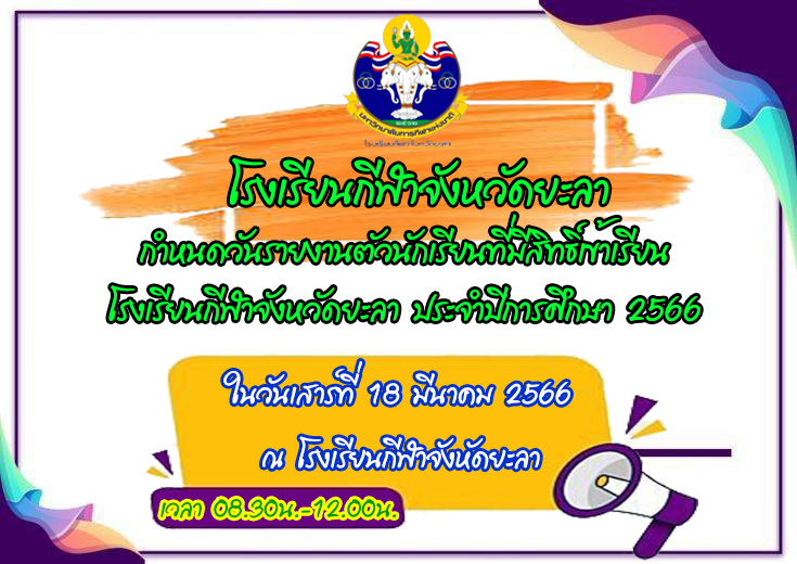 กำหนดวันรายงานตัวนักเรียนที่มีสิทธิ์เข้าเรียน โรงเรียนกีฬาจังหวัดยะลา...