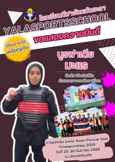 ขอแสดงความยินดีกับ นางสาวนูรฟาเดีย มะแร นักกีฬาปันจักสีลัต เยาวชนทีมชาติไทย