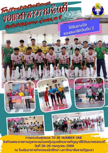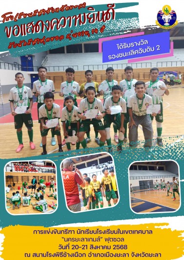 ขอแสดงความยินดีกับนักกีฬาฟุตซอลรุ่นอายุ 14 ปีได้รับรางวัลรองชนะเลิศอันดับสอง...