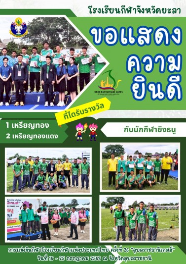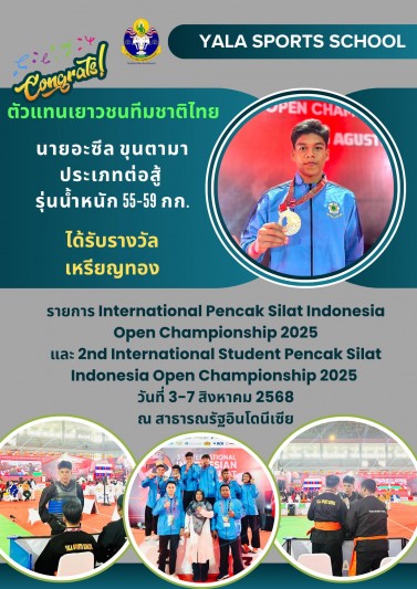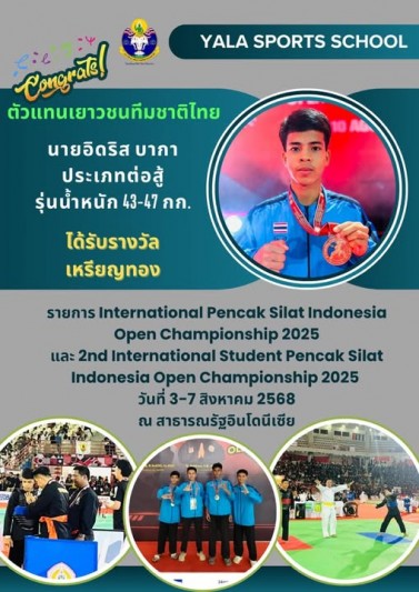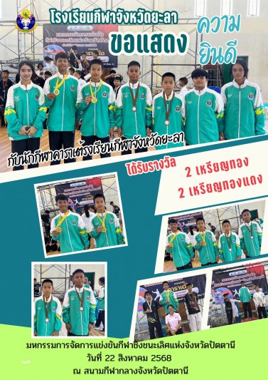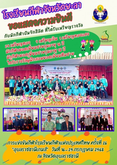 ขอแสดงความยินดีกับนักกีฬาปันจักสีลัต โรงเรียนกีฬาจังหวัดยะลา...
