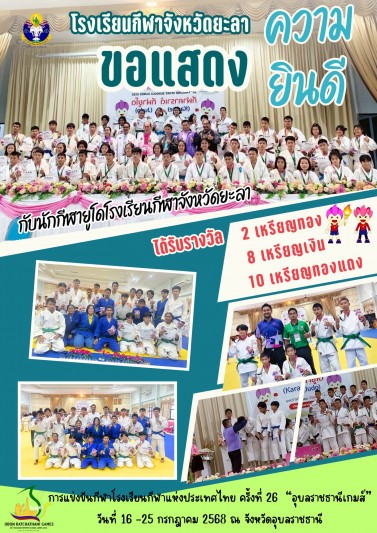 ขอแสดงความยินดีกับนักกีฬายูโด โรงเรียนกีฬาจังหวัดยะลาที่ได้รับรางวัล...