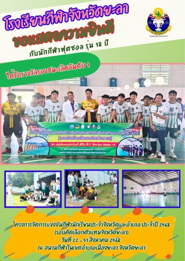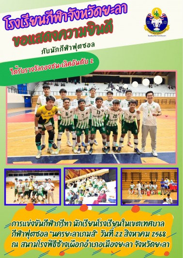 ขอแสดงความยินดีกับนักกีฬาฟุตซอลรุ่น 18 ปีโรงเรียนกีฬาจังหวัดยะลาได้รับรางวัลรองชนะเลิศอันดับที่...