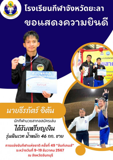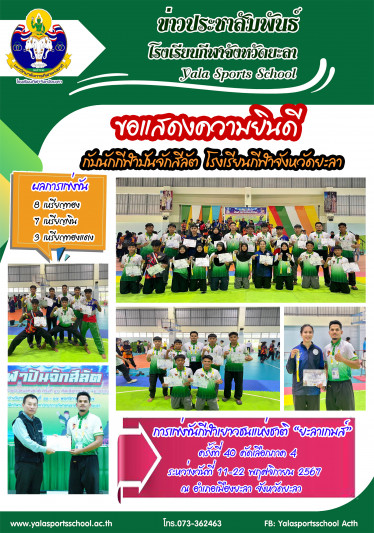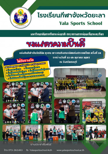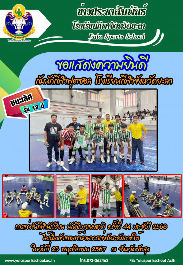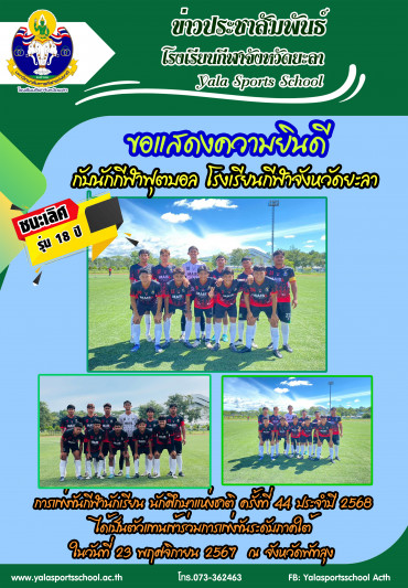 ขอแสดงความยินดี กับนักกีฬาฟุตบอล โรงเรียนกีฬาจังหวัดยะลา...
