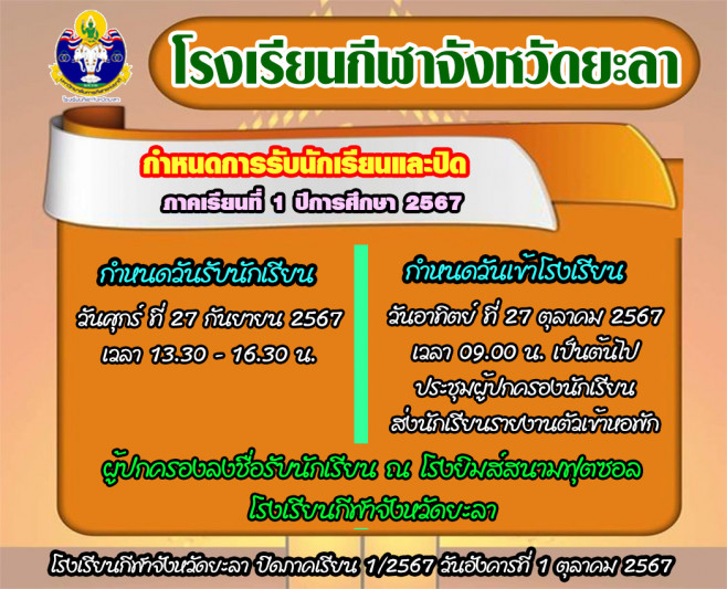 กำหนดการรับนักเรียนและปิดภาคเรียน